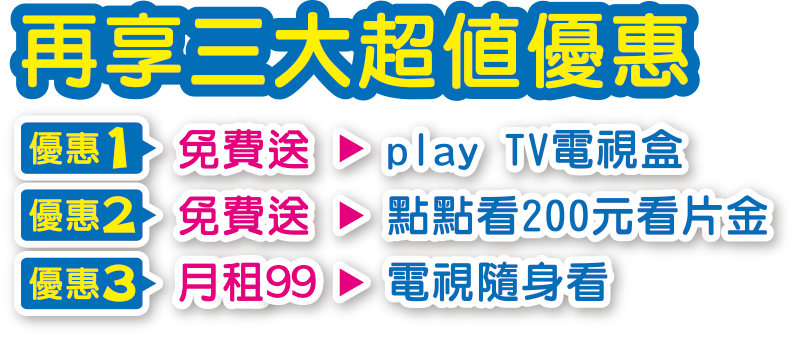 - 以上優惠月均價系指首年之年繳贈2個月+他家網路移轉贈3個月優惠,需附他網3個月內帳單方享優惠。另用戶每年可致電申請一次暫停服務,期間最長3個月。Play TV智慧電視盒介紹:http://playtv.topmso.com.tw/